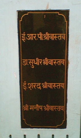 | शिवकुटी, इलाहाबाद के नाम पट्ट जो बताते हैं कि संयुक्त परिवार रह रहे हैं - एक छत के नीचे। ऐसे और भी बहुत घर हैं। पहला पट्ट (शिव धाम) तो वंश-वृक्ष जैसा लगता है! |